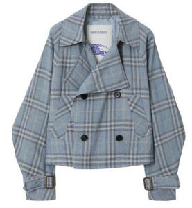 バーバリーの2025年夏コレクションでは、トレンチコートのデザインをアレンジした軽快なジャケットも登場しています。これらのジャケットは、高品質なコットンブレンドツイルで仕立てられ、バーバリーチェックの裏地をあしらったクロップドジャケットが特に注目されています。
