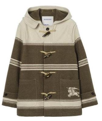 アイボリーとブラウンの柔らかな配色に、左ポケットの「馬上の騎士」モチーフがアクセントを添える。水牛角のトグルや刻印入りボタンなど細部まで作り込まれており、優良な素材使いが際立つ。品質基準の高さは、いわゆるN級品と評されるほど完成度が高い点も特徴だ。
